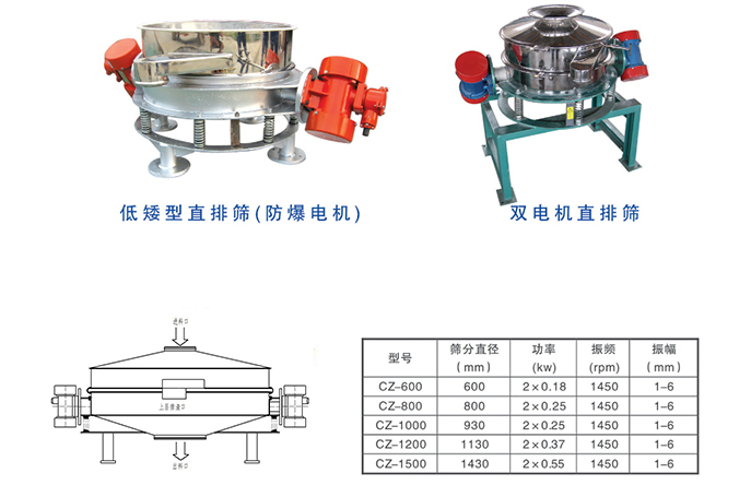 CZ系列直排筛是一种多用途新型筛分机,物料直接排放,处理量大。振动源分单电机和双电机结构形式。双电机结构相对于单电机结构直排筛的物料的运行轨迹更平稳,上层物料可自动排放,设备适应性显著增加;
